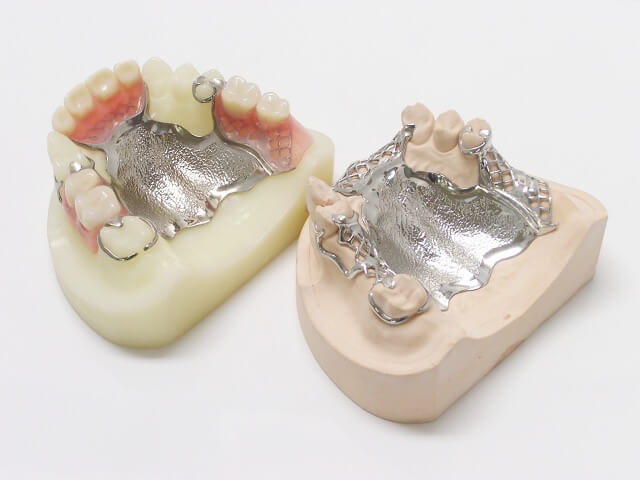 入れ歯の床の部分が、金属で出来た入れ歯で、プラスチックのものよりも床部分が薄くつくれるため発音がしやすく、装着した際の違和感も少なくて済みます。