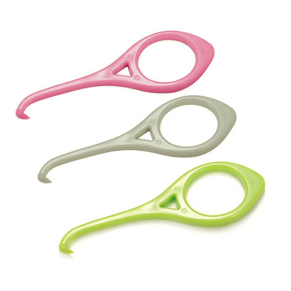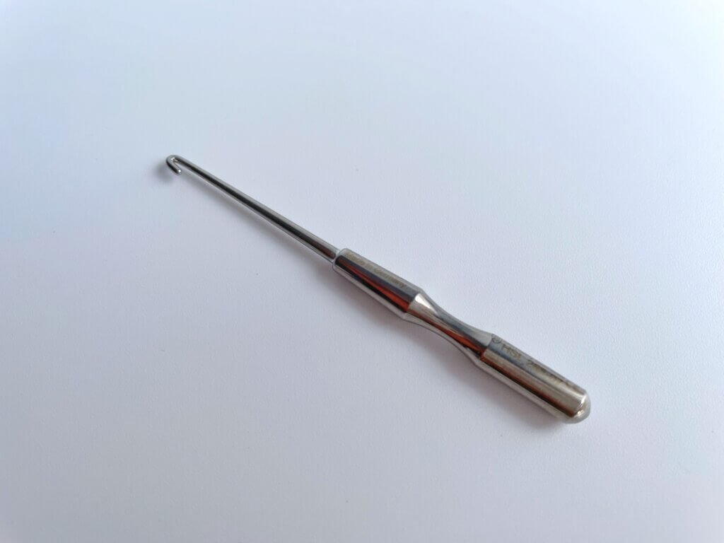 小さな器具でプラスチックのものや金属製のものなどさまざまですが、先の部分がフックになっておりインビザラインのマウスピースの縁に引っ掛けて外せるようになっています。