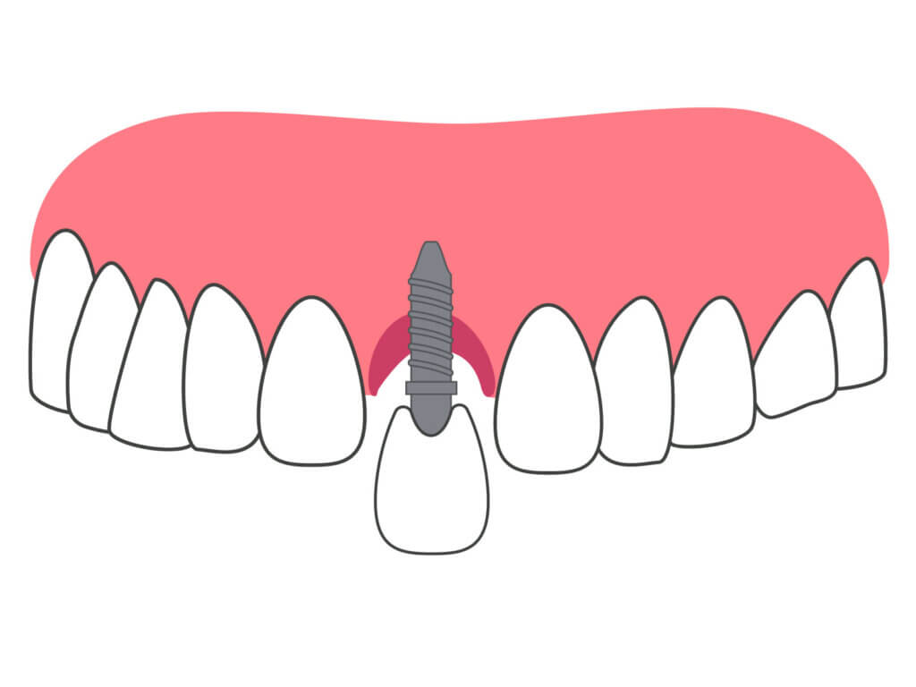 お口の中で歯周病菌が増殖し、インプラントと骨の間に潜り込み毒素を出しながら周囲の歯周組織(骨や歯茎など)を破壊してしまうことで、最終的にはインプラントが抜け落ちてしまうこともあります。