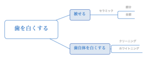 【ホワイトニング】つまり歯を白くする方法は、以下の図の通りです。