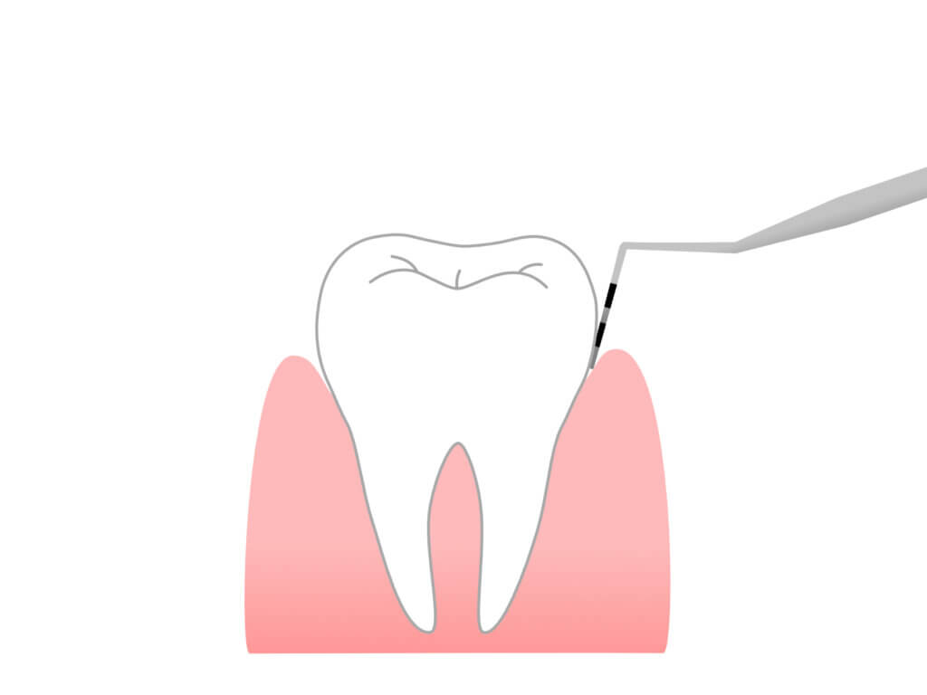 プロービング、歯周ポケット測定: プロービングは歯周病診断において中心的な検査です。これは、特別に設計された器具(プローブ)を使用して、歯と歯茎の間に形成される「歯周ポケット」の深さを測定するものです。正常な歯茎ではポケットは深くないですが、歯周病が進行すると、ポケットは深くなり、そこに歯周病の細菌が蓄積しやすくなります。プロービングによる正確な測定は、歯周病の重症度を把握し、適切な治療方針を決定するためにとても重要です。